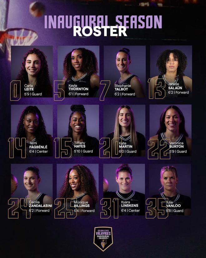 WNBA新軍金州女武神明日迎來常規(guī)賽首秀,12人大名單出爐