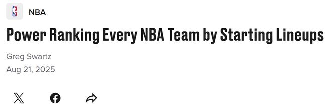 火箭隊第四!美媒公布首發(fā)實力排名:零補強勇士仍第6湖人隊第10