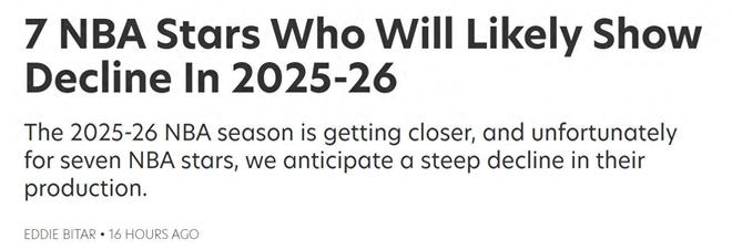 詹庫皆遭看衰!美媒預測7大球星新賽季下滑:詹姆斯庫里高居前二